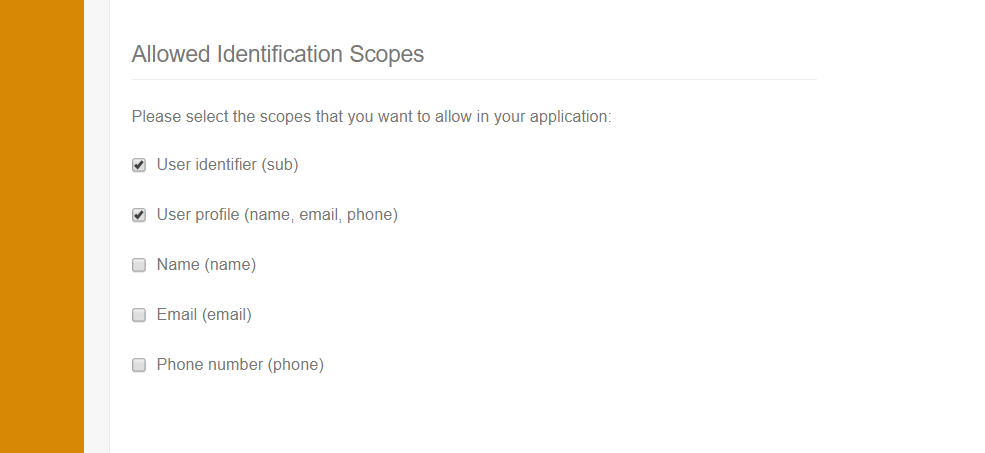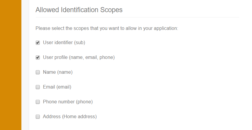 The image below shows how to select the allowed Identity Scopes in the Application Settings page: